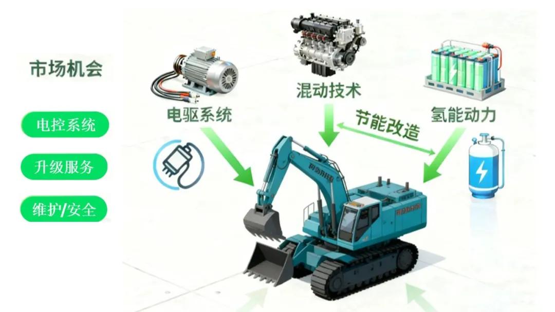 綜上所述,當前工程機械后市場正處在“存量”與“增量”并存、“防守”與“進攻”皆需的戰(zhàn)略調(diào)整期。單一的策略已難以應對復雜局面。成功的路徑在于“固本拓新”,攻守兼?zhèn)洹A硪环矫妫?/span>必須敏銳果斷地“馭變”,主動擁抱新能源、數(shù)字化與人工智能的技術(shù)趨勢。這是企業(yè)打破同質(zhì)化競爭、構(gòu)建長期競爭優(yōu)勢、實現(xiàn)未來價值增長的發(fā)動機。